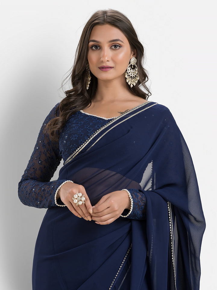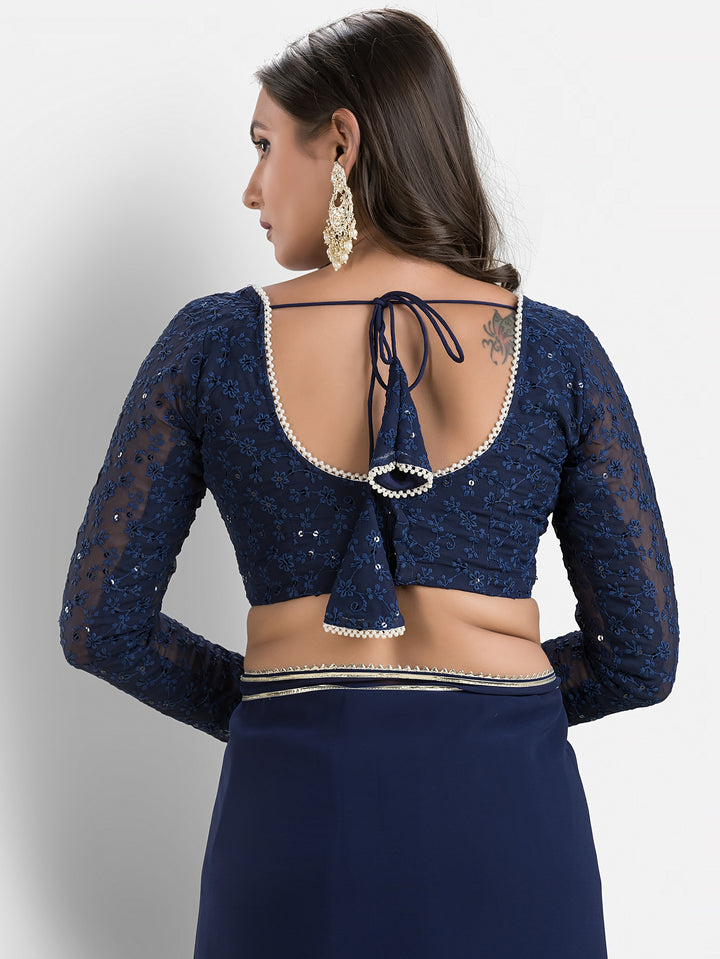 Diamond Blue Raffle Pre-draped Saree with Blouse & Peticoat