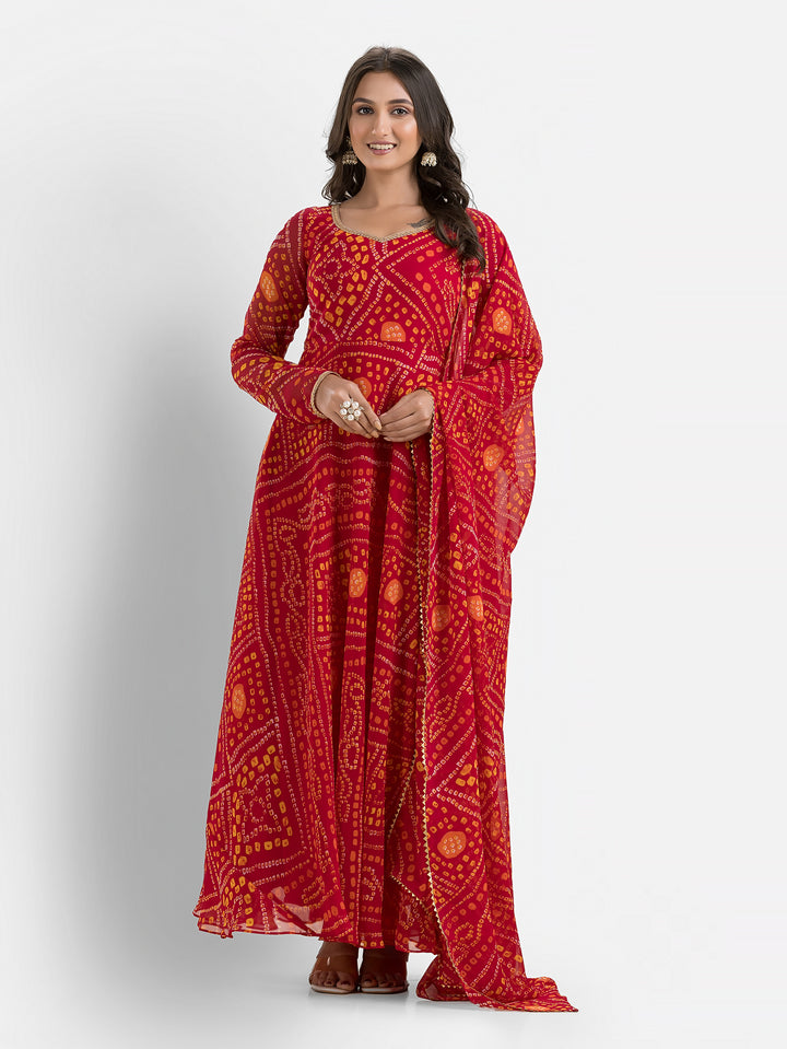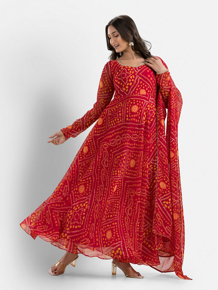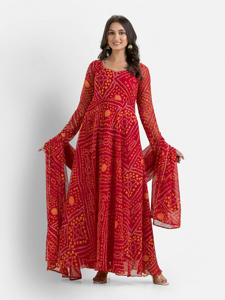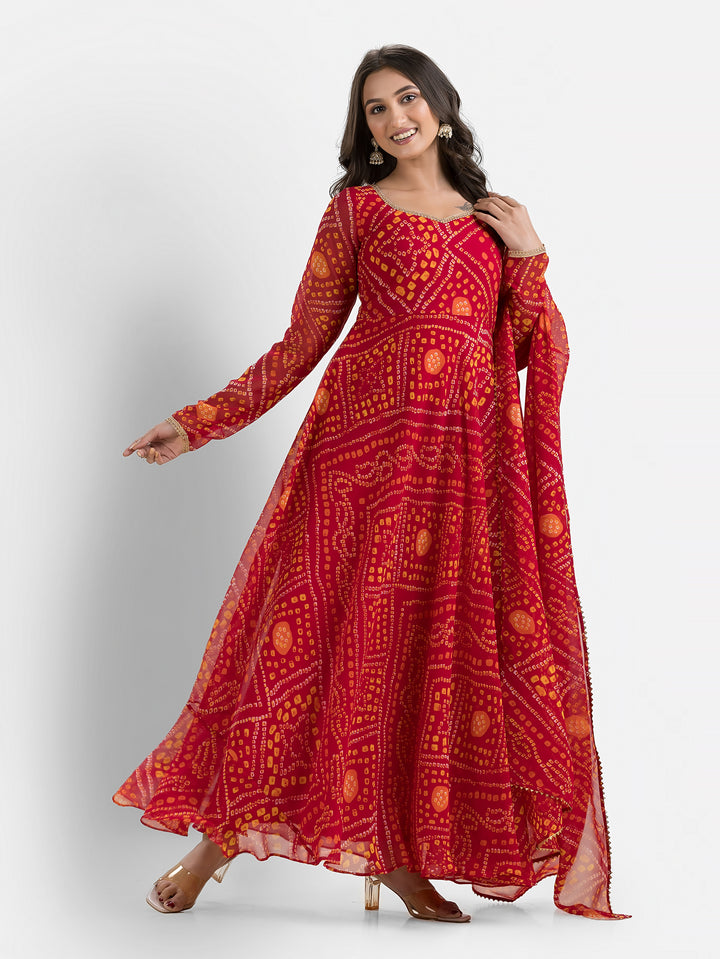 Gulabi Bandhani Anarkali with Dupatta – Indievastra