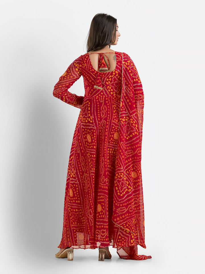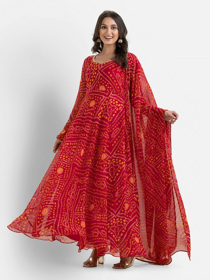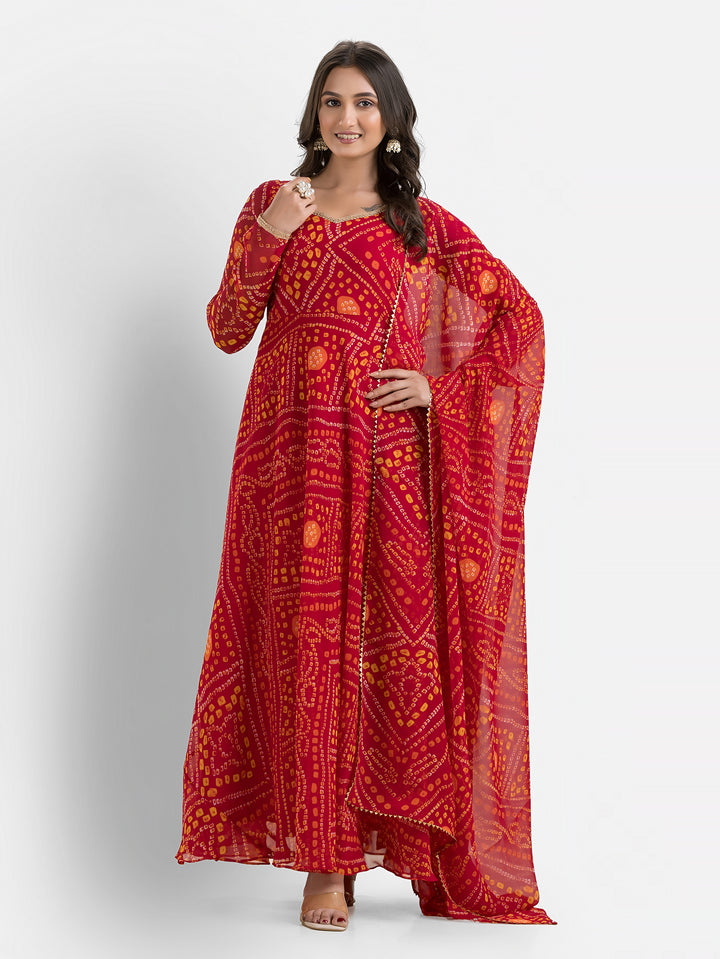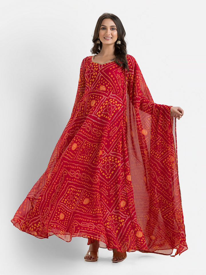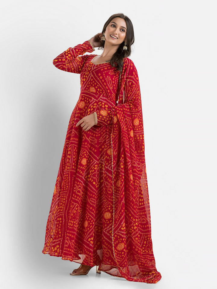 Gulabi Bandhani Anarkali with Dupatta – Indievastra
