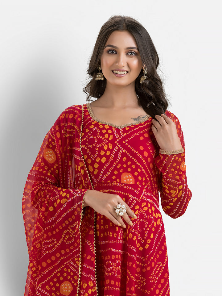 Gulabi Bandhani Anarkali with Dupatta