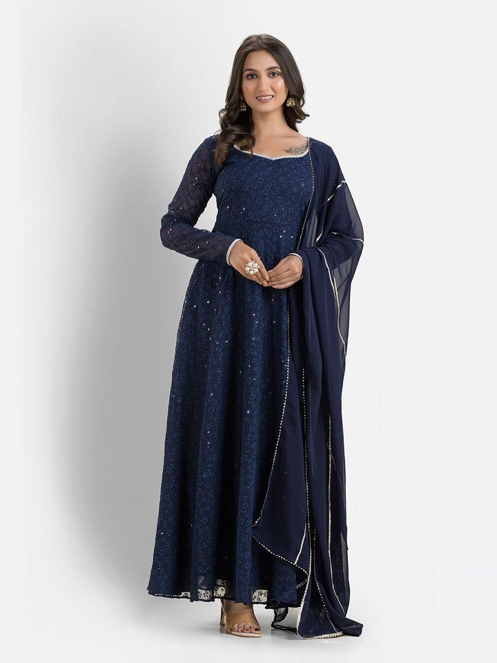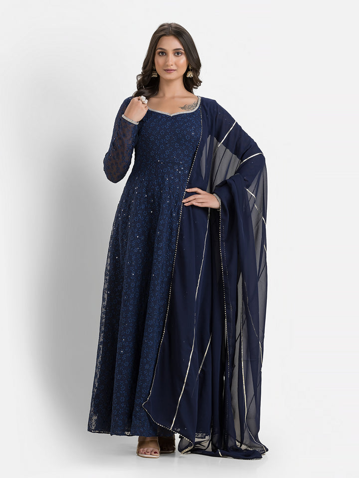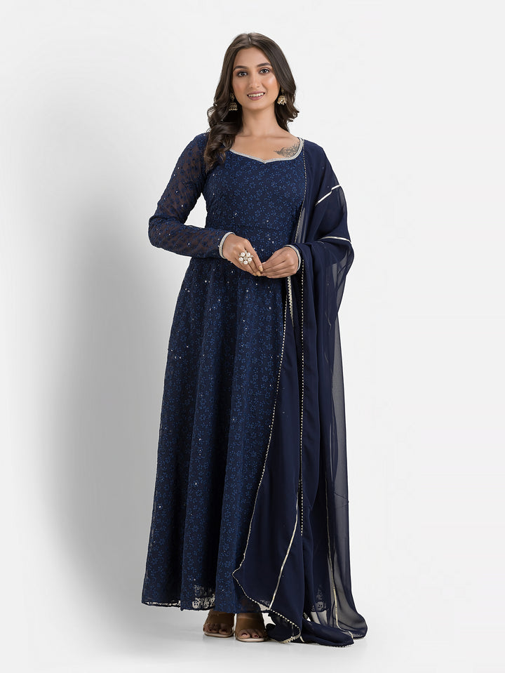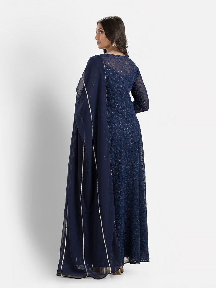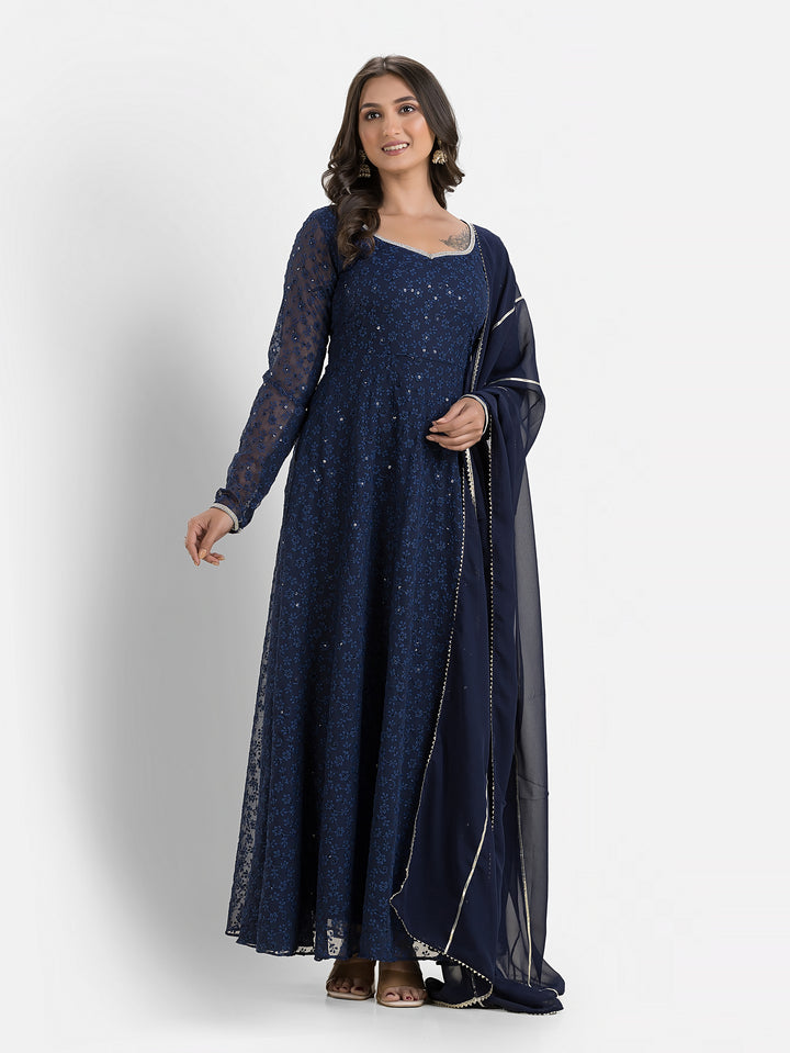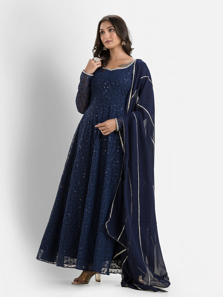 Marine Blue Schiffli Anarkali with Dupatta – Indievastra