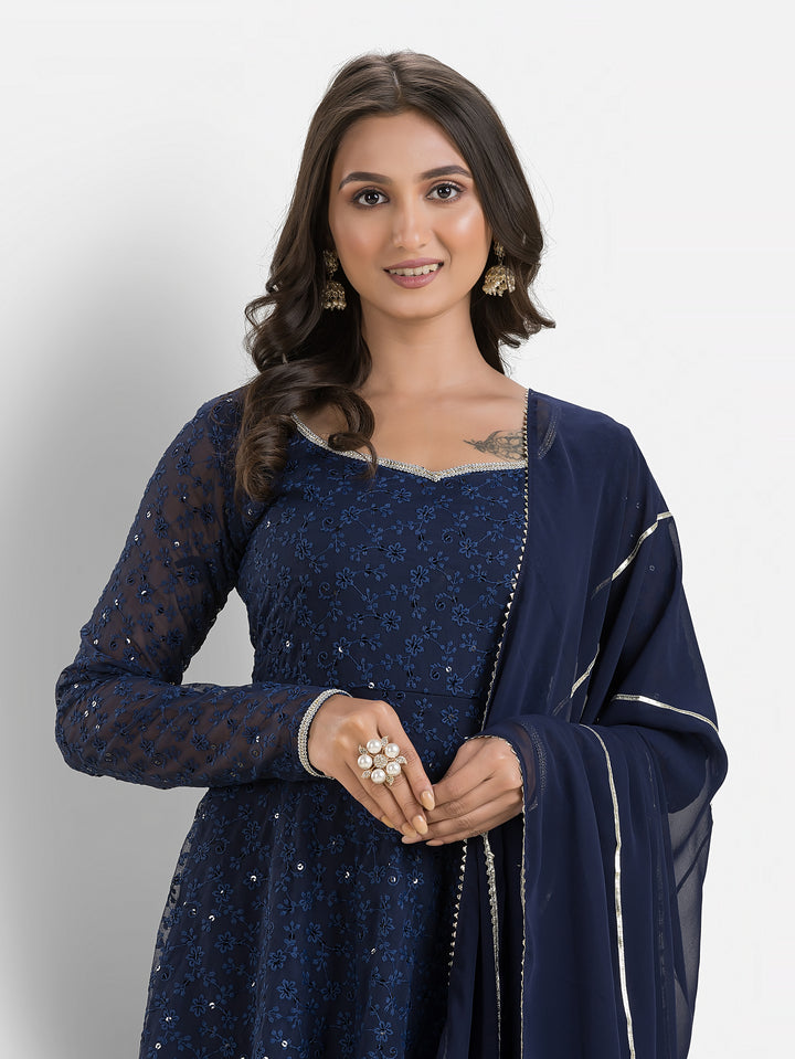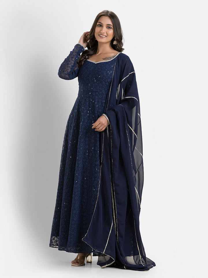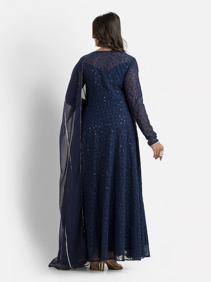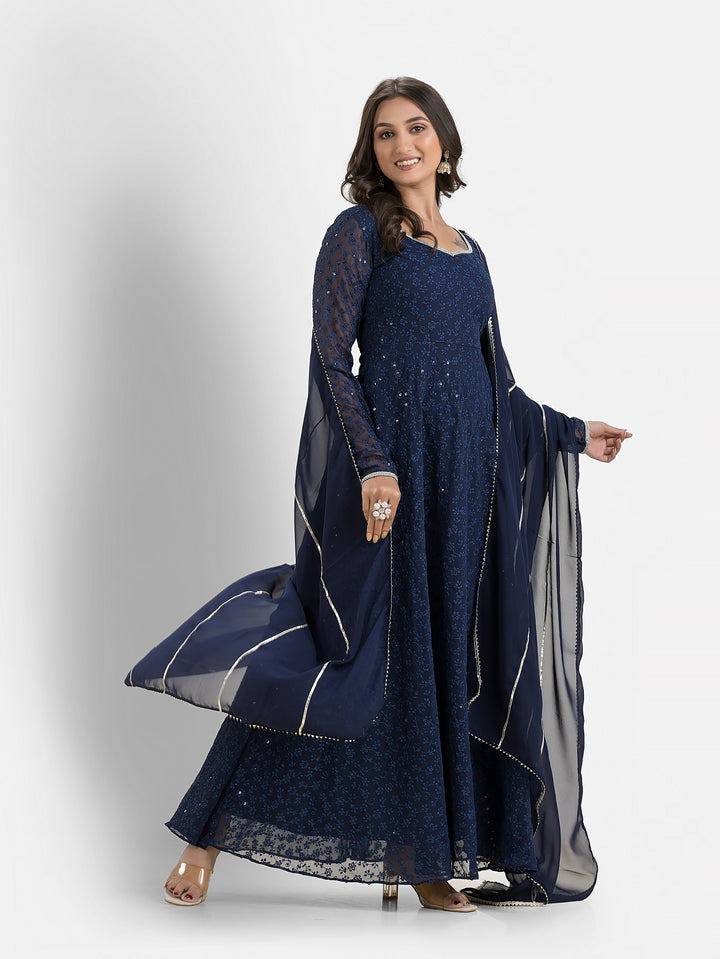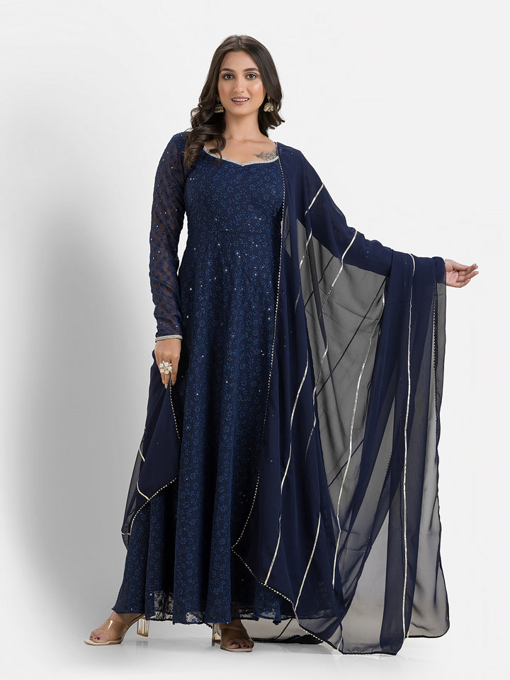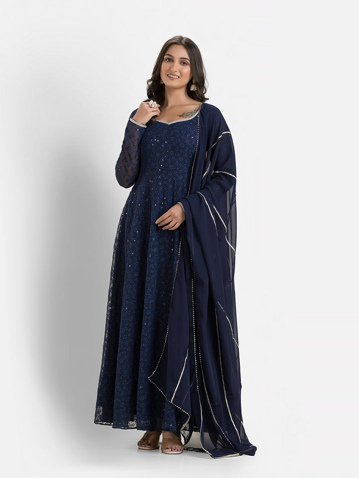 Marine Blue Schiffli Anarkali with Dupatta – Indievastra