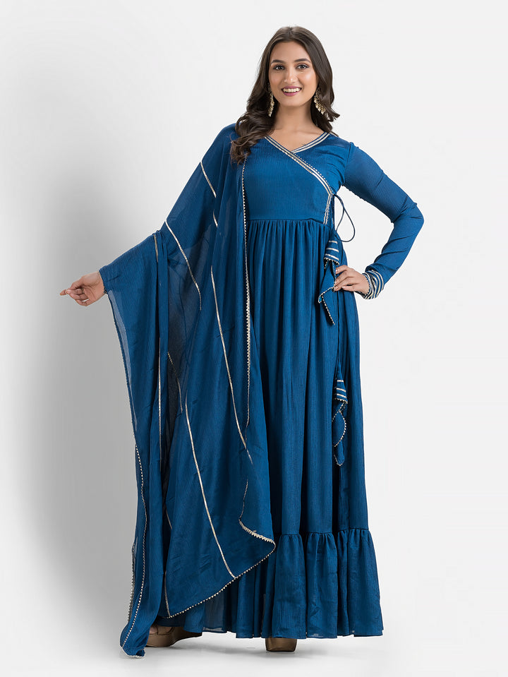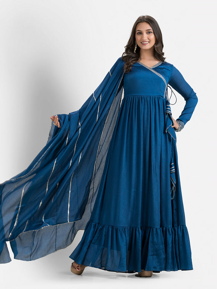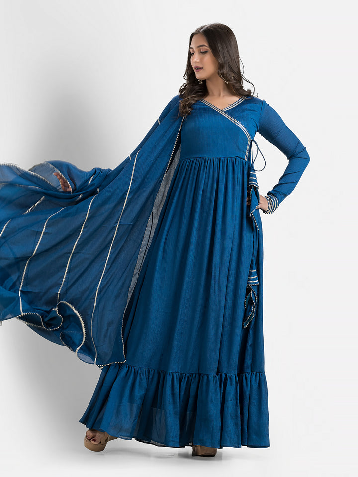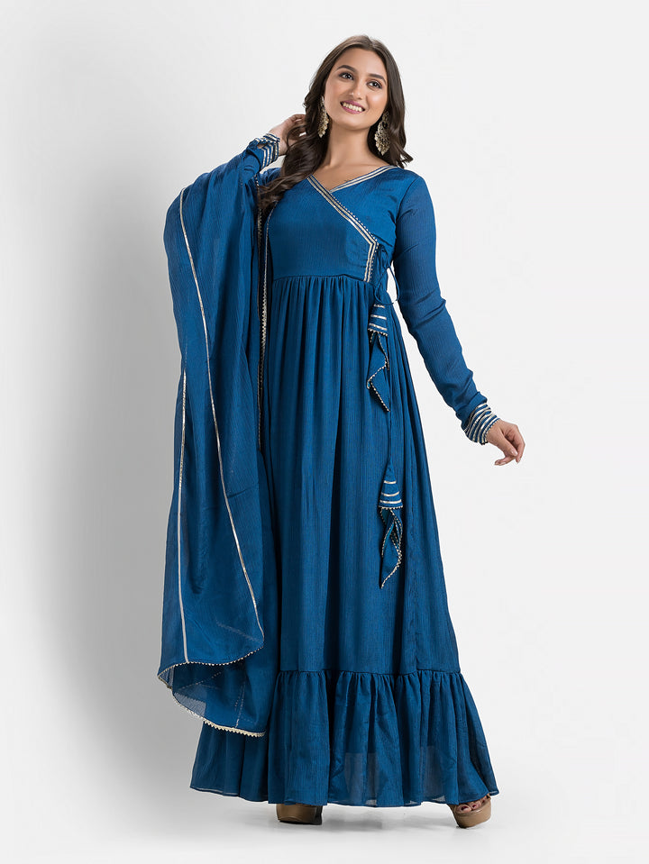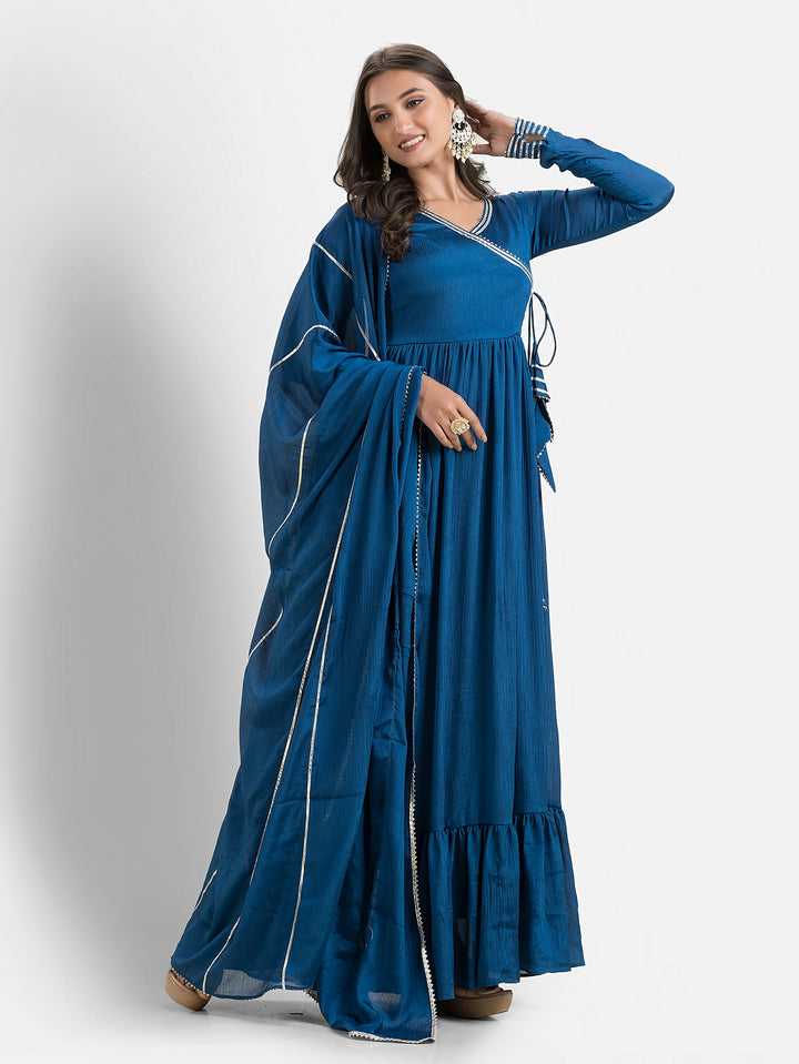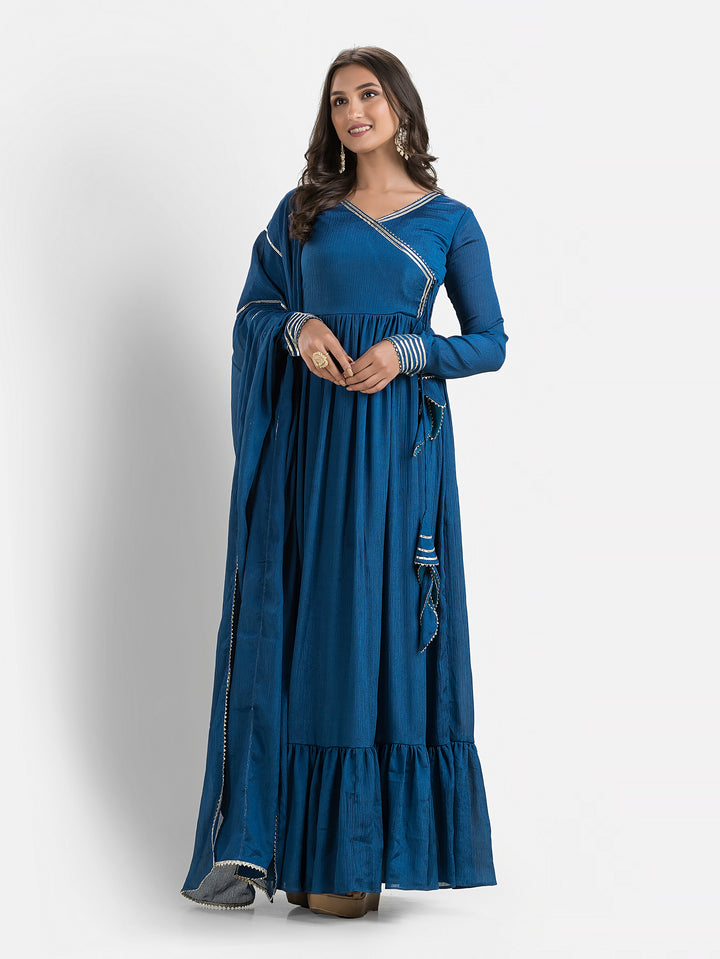 Indigo Blossom Angrakha Anarkali with Dupatta – Indievastra
