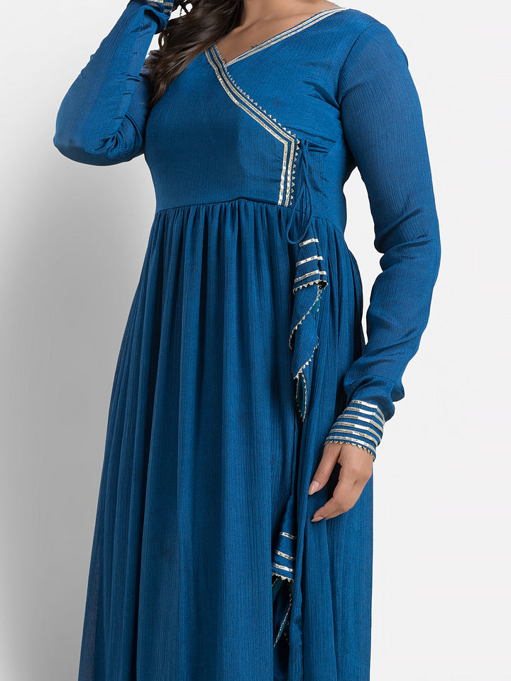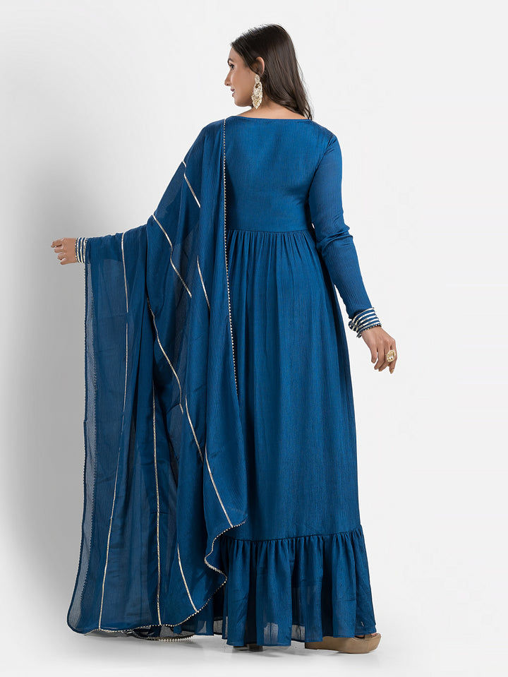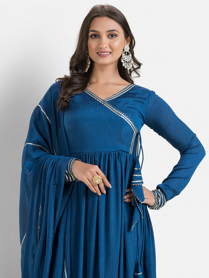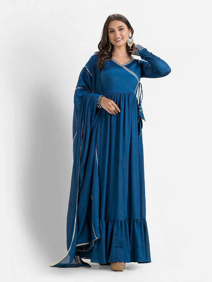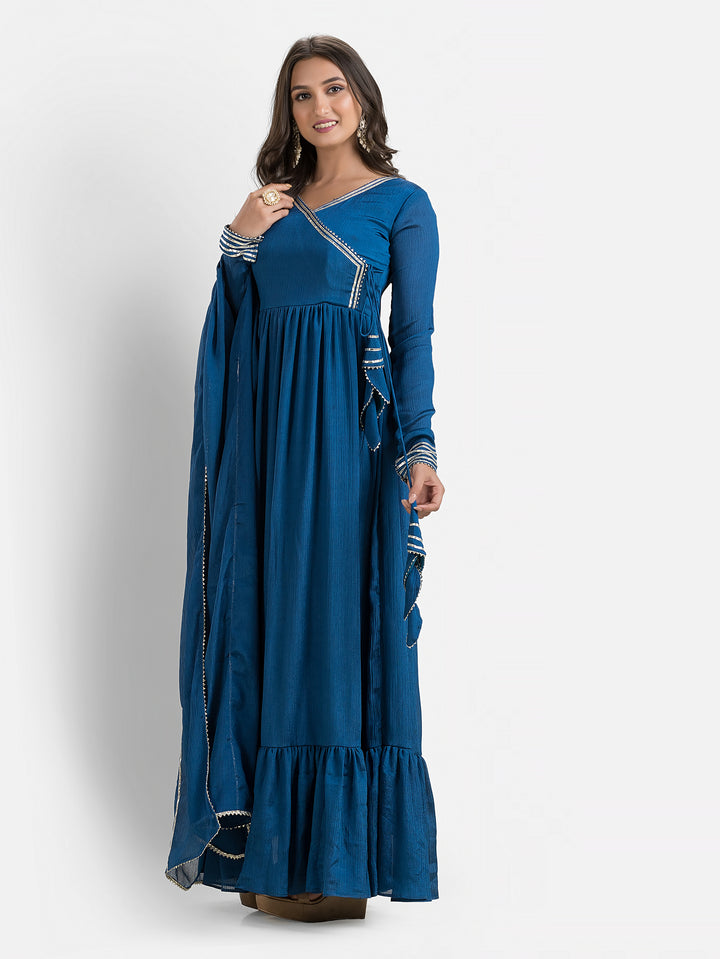 Indigo Blossom Angrakha Anarkali with Dupatta