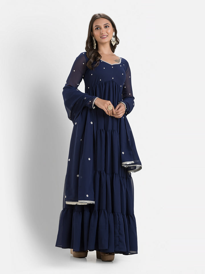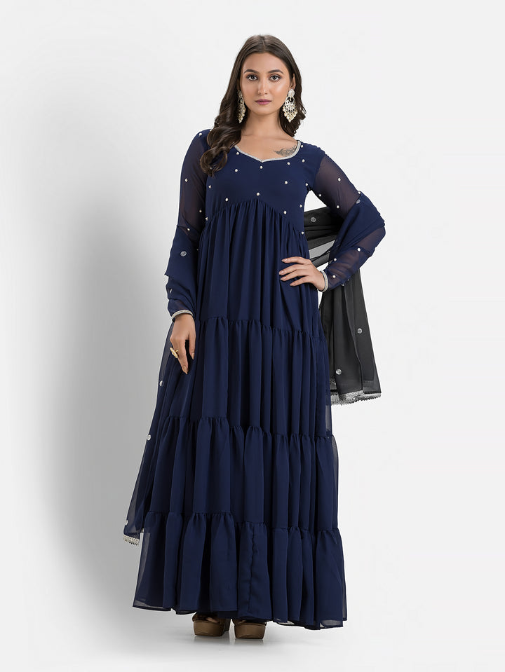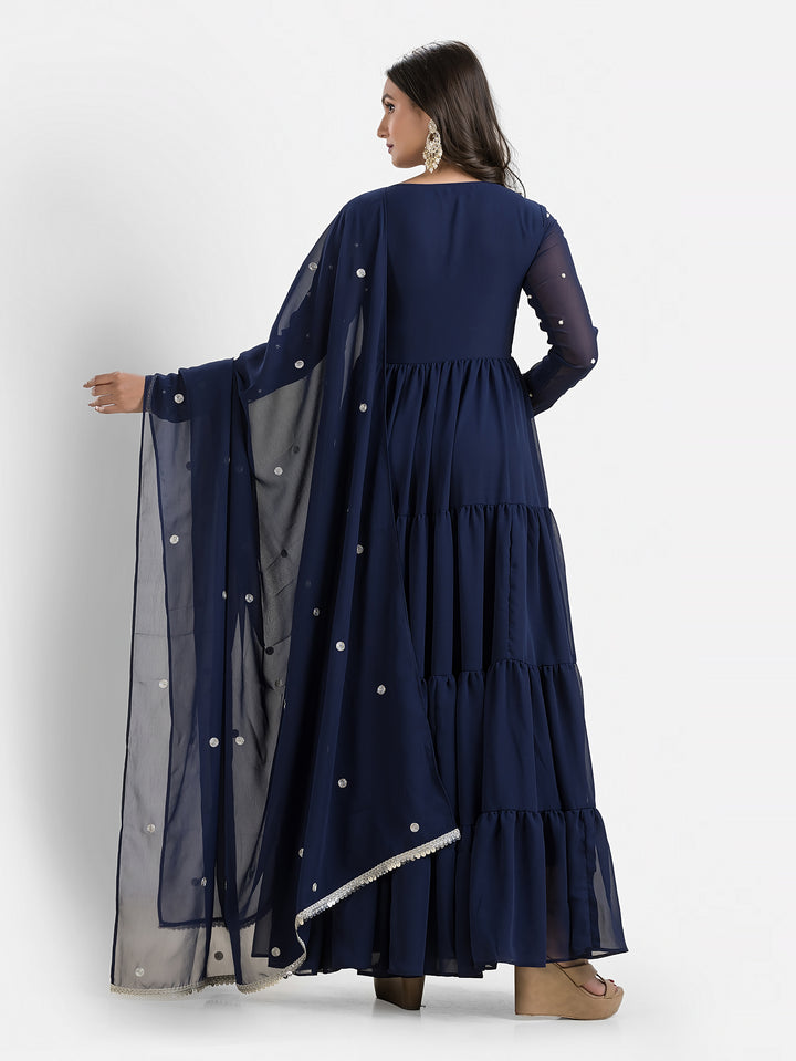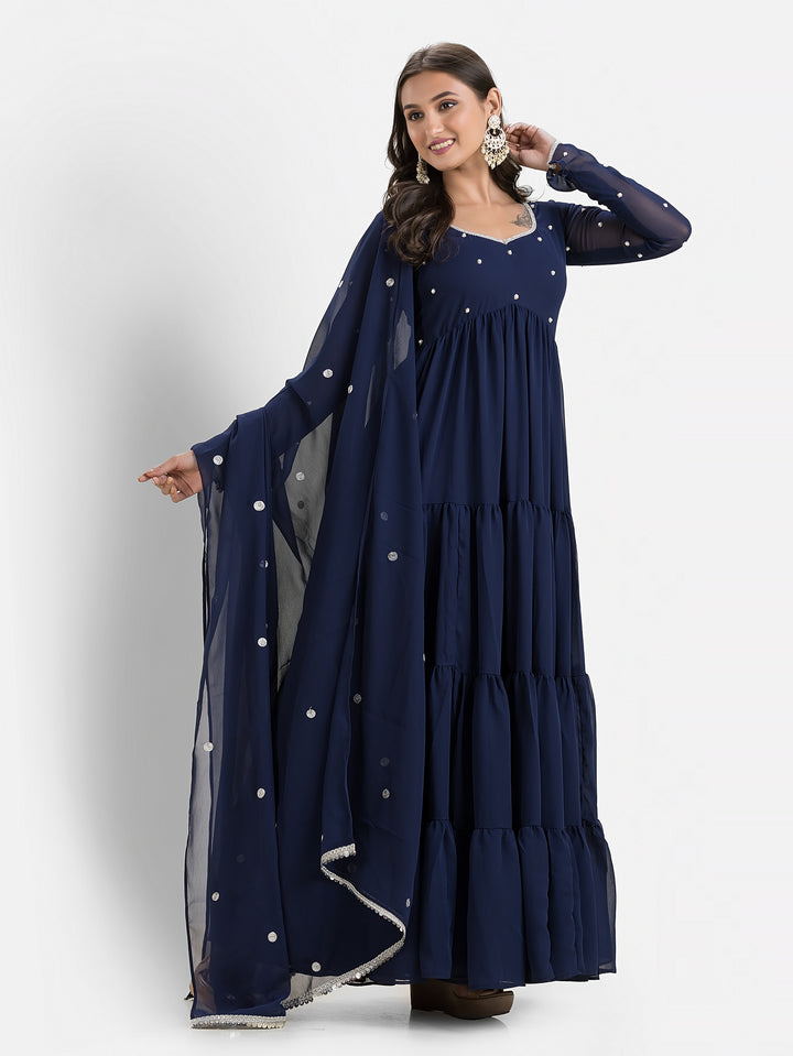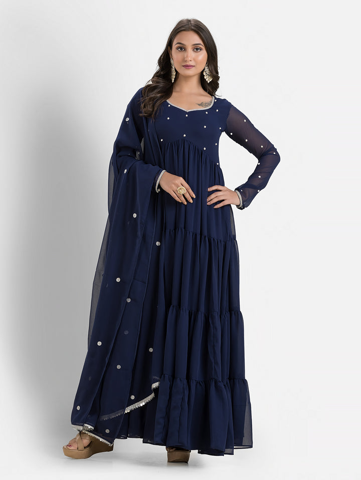 Moonlit Navy Anarkali with Dupatta – Indievastra