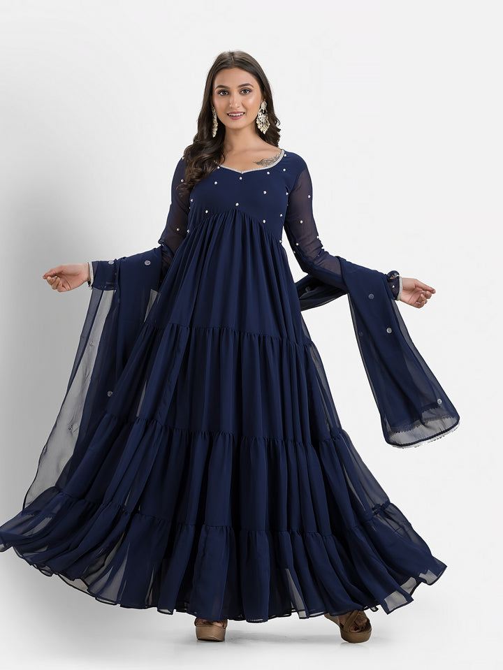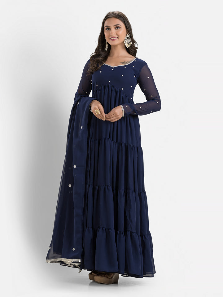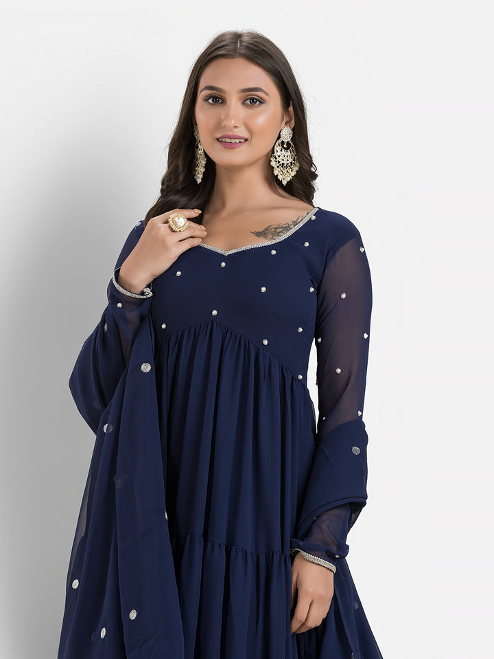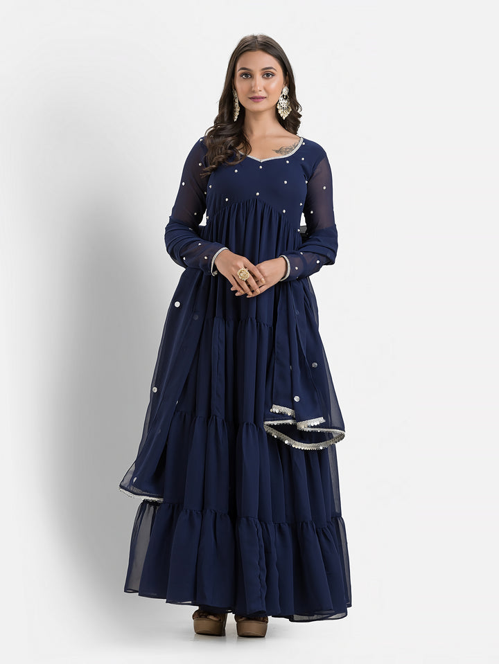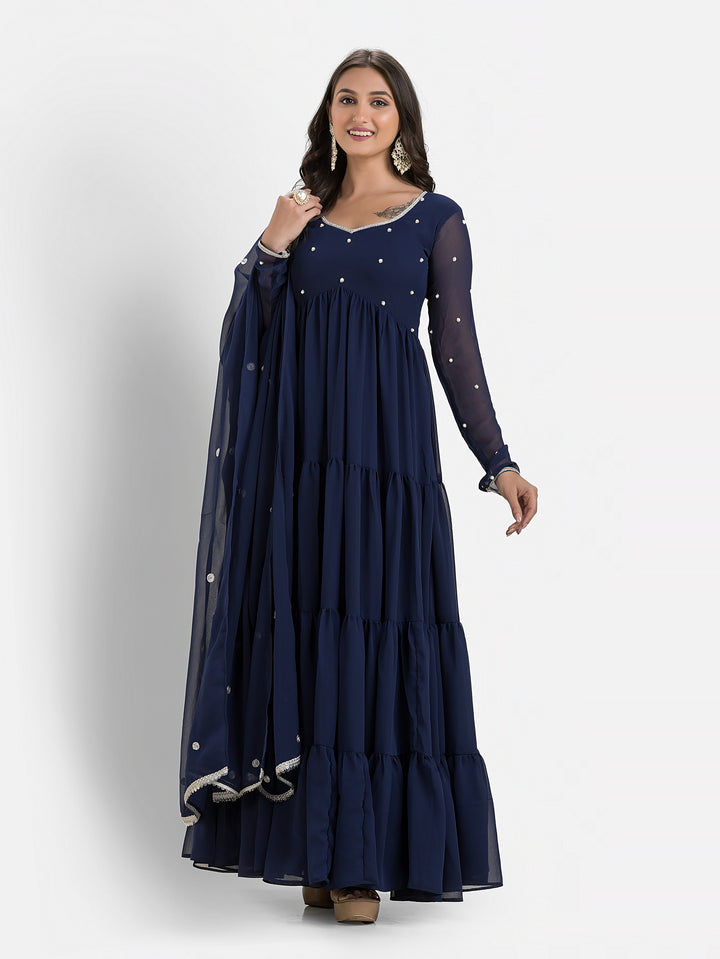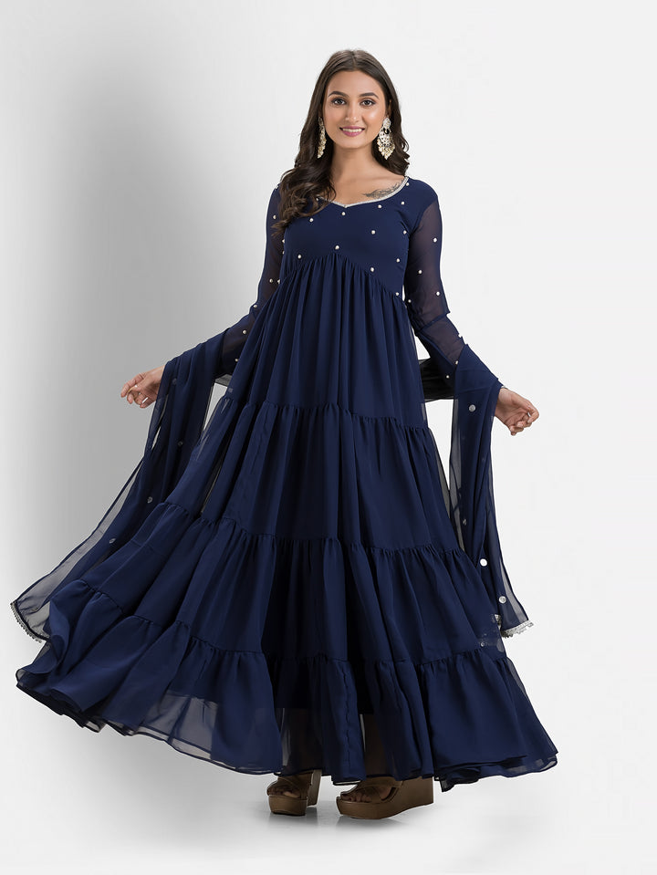 Moonlit Navy Anarkali with Dupatta – Indievastra