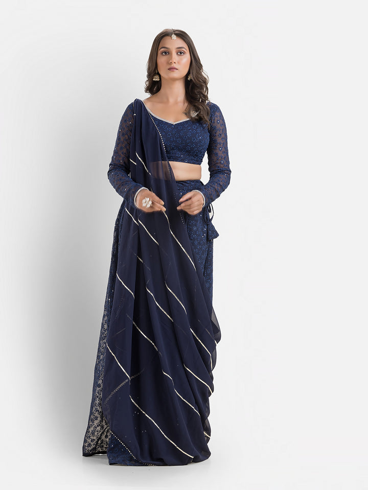Shahi Blue Lehenga with Dupatta – Indievastra